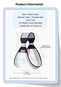 – Breathable Polyester Material: Made from lightweight and breathable polyester, this sling keeps your baby cool and comfortable in all seasons. The material is also easy to clean, making it perfect for everyday use.