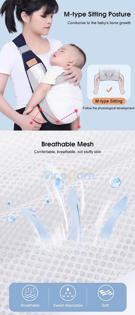 – Ergonomic Design: The one-shoulder strap evenly distributes your baby’s weight, reducing strain on your back and shoulders. Its ergonomic design supports your baby’s natural posture, promoting healthy hip development.